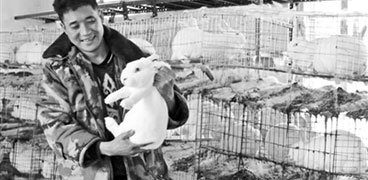 鐘軍和他的獺兔?! ?月10日,位于海晏縣三角城鎮(zhèn)三聯(lián)村的一處獺兔養(yǎng)殖場,負責人鐘軍正清掃著兔棚。鐘軍說:“只要肯干,就不愁沒錢花,獺兔不光肉能賣錢,這兔皮更值錢啊!&