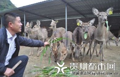 去年7月,貴州安順關(guān)嶺縣關(guān)索街道辦西龍村的村主任楊志微在當(dāng)?shù)亟ǔ闪税岔樖惺准颐坊桂B(yǎng)殖場(chǎng),一百多頭梅花鹿從吉林長(zhǎng)途跋涉“移民”來到了這里。經(jīng)過幾個(gè)月養(yǎng)殖,這些東北梅花鹿已經(jīng)完全適應(yīng)了當(dāng)?shù)貧夂?,并在新家產(chǎn)下了4頭鹿寶寶。
