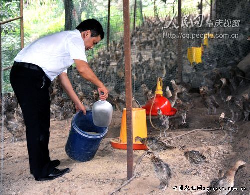 40開外的蒲東成也曾是云陽外出勞務大軍中的一員,“遠征”廣東、上海、湖北等地,在高樓林立的建筑工地當了近20年農(nóng)民工。隨著年齡的增長和故土情結(jié)的加深,他夢想著回到家鄉(xiāng)干一番事業(yè),通過考察、比對和抉擇,他決定在養(yǎng)殖行業(yè)一試身手。2010年底,他回到云陽縣復興社區(qū),租賃了一塊移民搬遷后閑置的山坡林地。這里經(jīng)過三峽移民后,有廣闊的生態(tài)資源和創(chuàng)業(yè)空間。說干就干,他與村民們談妥林地租賃方案后,便開始搭棚、布網(wǎng)、建園,嘗試進行特種循環(huán)養(yǎng)殖,先后成功養(yǎng)殖了蝎子、蜈蚣、黃粉蟲等藥用昆蟲,然后依托蟲類食物鏈,引進野雞、珍珠雞、貴妃雞等珍禽養(yǎng)殖。目前,他的野雞蛋、珍珠肉雞、貴妃雞及相關制品陸續(xù)成為市場搶手貨,鮮供到萬州、重慶、宜昌等地客商和餐館、酒店?;臈壛值仞B(yǎng)殖規(guī)模從15畝擴建到現(xiàn)在23.5畝,通過勤奮+智慧已造就30萬元“變廢為寶”新神話。