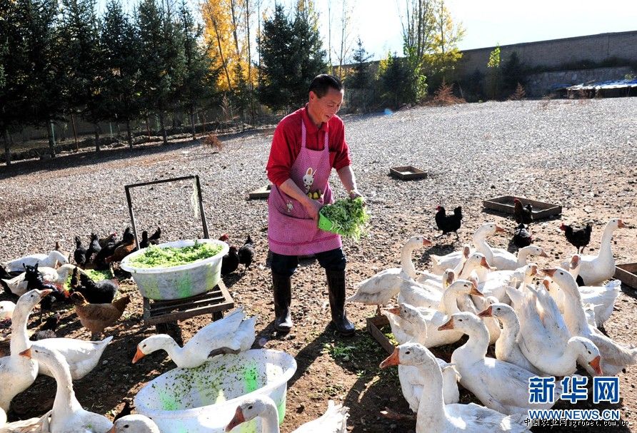 10月17日,工人給禽畜喂食尾菜和黃粉蟲排泄物的混合飼料。黃粉蟲排泄的糞便富含有機(jī)物質(zhì),可用于雞鴨等禽畜飼養(yǎng)。