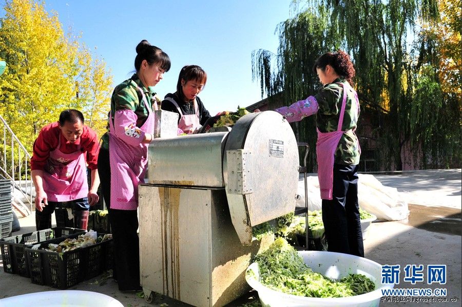 10月17日,工人們?cè)谶M(jìn)行尾菜粉碎處理。甘肅蘭州市榆中縣是高原夏菜的主產(chǎn)區(qū),在年外銷蔬菜10億多公斤的同時(shí),該地區(qū)的尾菜污染問題十分嚴(yán)重。目前,蘭州市工業(yè)研究院和蘭州一家蔬菜保鮮公司共同完成了利用黃粉蟲(俗稱“面包蟲”)過腹轉(zhuǎn)化技術(shù)實(shí)現(xiàn)尾菜無害化處理項(xiàng)目,有效解決了這一問題,其生產(chǎn)的黃粉蟲高蛋白食品深受市場歡迎。