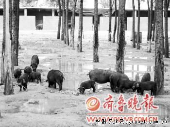 9日上午,記者來到即墨市金口鎮(zhèn)的青島華外金口綜合生態(tài)園,一進入生態(tài)園便看到成群的藏香豬在樹林里覓食,樹林里滿是西紅柿、茄子、蒲公英等蔬菜和草藥。生態(tài)園的工作人員介紹,這些是藏香豬的食物,除了吃自家生態(tài)園種的蔬菜和草藥之外,藏香豬還吃一些蟲草、松臻等特制的飼料。