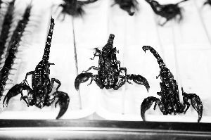 “哎呀,我變成一只大公雞了。”小唐將一只蜘蛛咀嚼幾下吞進(jìn)肚里,接著又吞下蝎子,路人無(wú)不驚愕地看著他,眼睛睜成了雞蛋。他的女朋友驚訝地說(shuō):“這種東西你也敢吃?”但他像公雞一樣伸伸脖子:“有人賣(mài),就有人買(mǎi)。這玩意好吃。”