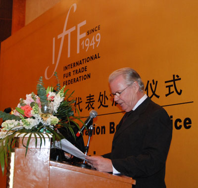 國際毛皮協(xié)會(IFTF)于2009年10月28日晚在昆侖飯店二層的宴會廳舉辦了其北京代表處的正式開業(yè)儀式。到場的嘉賓包括來自相關(guān)政府主管部門商務(wù)部、農(nóng)業(yè)部、國家林業(yè)局、環(huán)境保護部、國際質(zhì)量監(jiān)督檢驗檢疫總局,和國有資產(chǎn)管理委員會的代表,以及相關(guān)行業(yè)組織、駐華使館和媒體的代表。