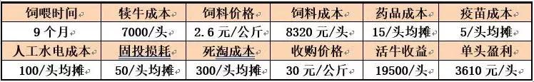 1、犢牛體重150公斤;2、育肥至650公斤銷售;3、飼料用量3200公斤。