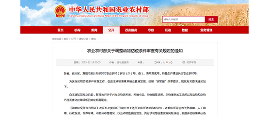 農(nóng)業(yè)農(nóng)村部關(guān)于調(diào)整動(dòng)物防疫條件審查有關(guān)規(guī)定的通知