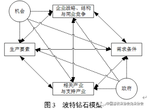 通過波特鉆石分析西北地區(qū)兔產(chǎn)業(yè)的整體優(yōu)勢,發(fā)現(xiàn)西北地區(qū)在生產(chǎn)要素,需求條件,企業(yè)戰(zhàn)略和相關(guān)產(chǎn)業(yè)等方面具有較強的競爭力(圖3)。