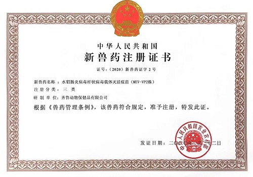 近日,齊魯動(dòng)物保健品有限公司獲得國內(nèi)首個(gè)毛皮動(dòng)物專用基因工程亞單位疫苗(水貂腸炎病毒桿狀病毒載體滅活疫苗(MEV-VP2株))新獸藥證書,證書號(hào)(2020)新獸藥證字2號(hào)。