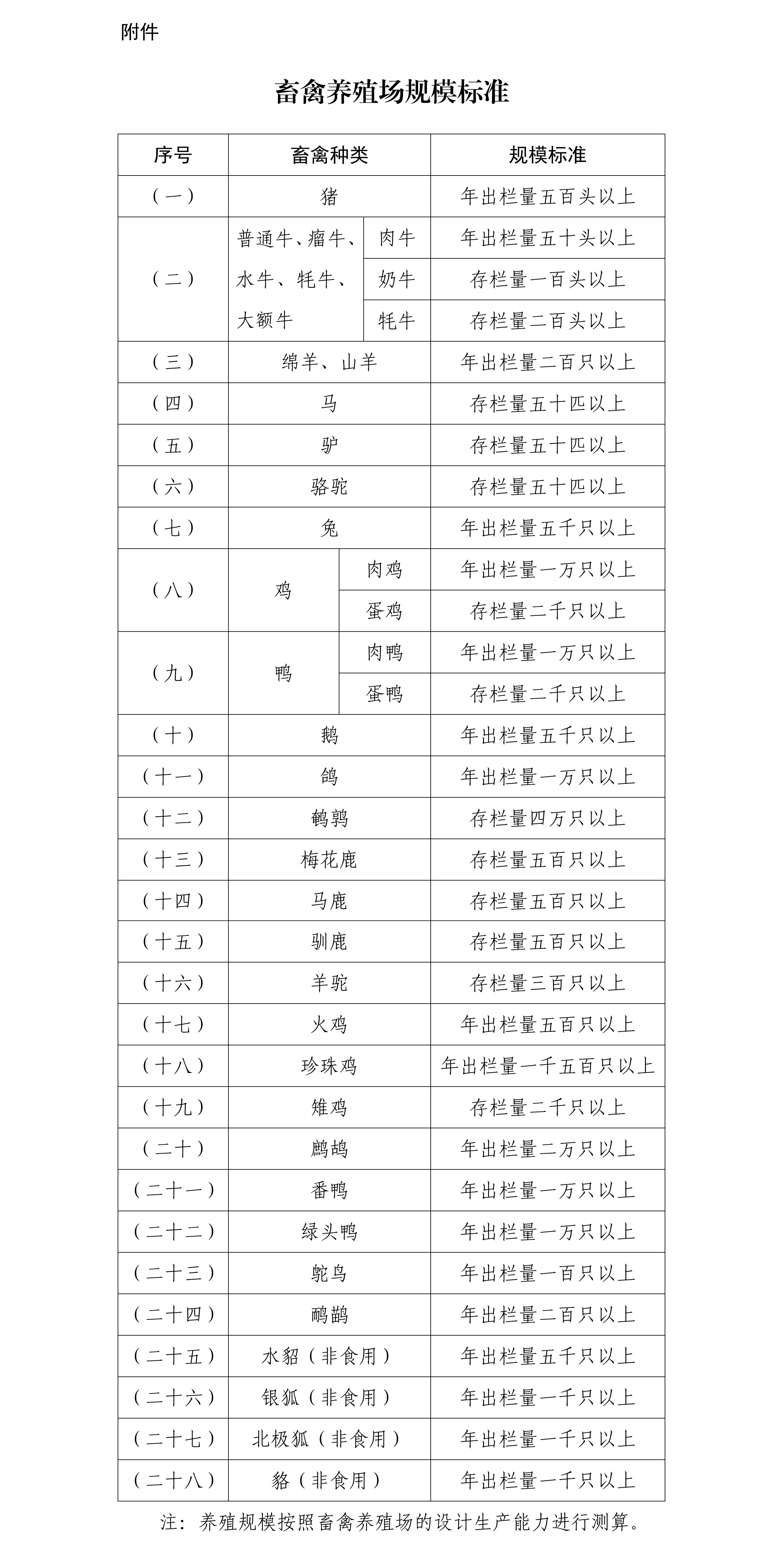 附件:畜禽養(yǎng)殖場規(guī)模標(biāo)準(zhǔn)