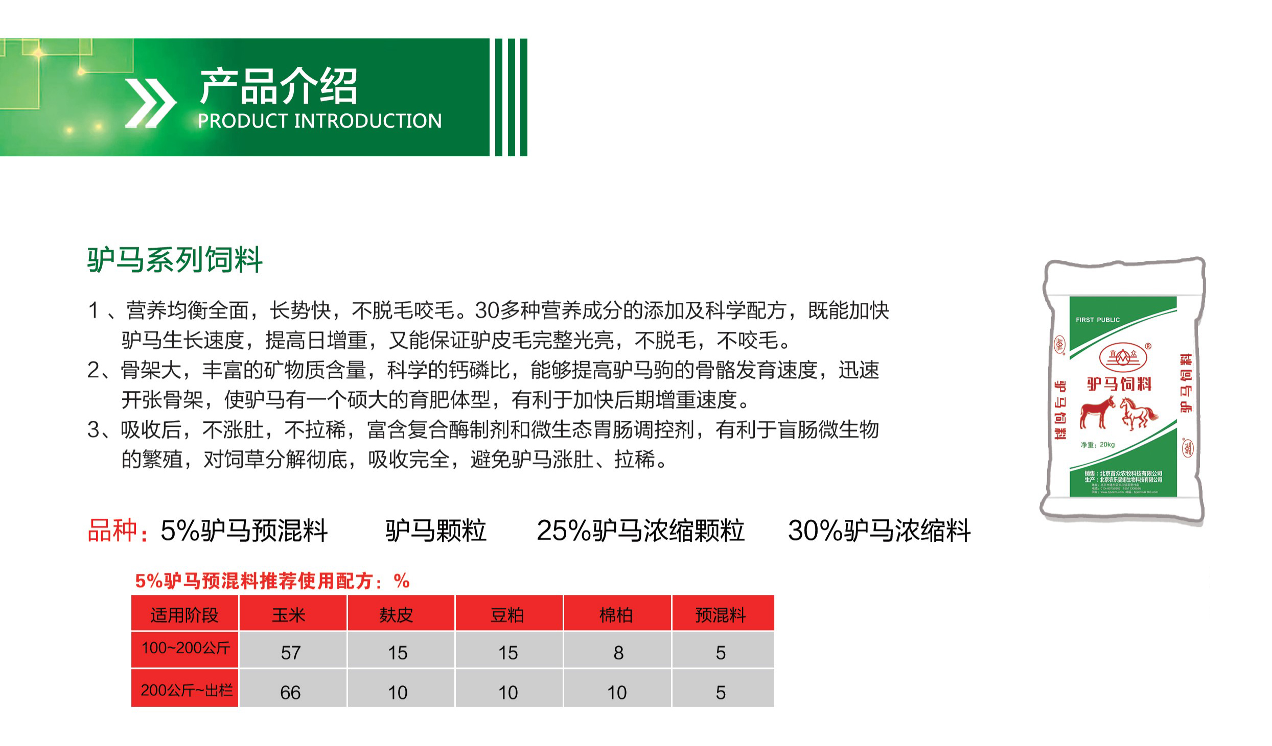 公司依托技術(shù)優(yōu)勢,服務(wù)眾多大型飼料企業(yè)與養(yǎng)殖企業(yè),國內(nèi)首創(chuàng)15系列分階段草食動物配方飼料,生產(chǎn)豬牛羊驢馬全系列飼料,產(chǎn)品深得客戶認(rèn)可,為養(yǎng)殖合理創(chuàng)造經(jīng)濟(jì)效益。