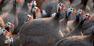 “咯咯咯,咯咯咯……”一群珍珠雞撲騰著,歡快的叫聲回蕩在山谷里。41歲的孫玉貴正在投喂青菜葉和玉米,成群的珍珠雞圍著他好熱鬧。“兩個多月,