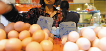 禪城山紫市場一檔口,普通雞蛋和土蛋同臺不同價(jià)?! ⊥岭u蛋比普通雞蛋貴了近一倍的價(jià)格,也阻擋不了市民對土雞蛋的趨之若鶩。放養(yǎng)、不吃飼料、蛋黃大又黃,營養(yǎng)又健康。這一