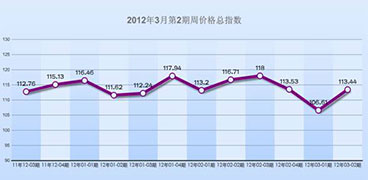 據(jù)“中國(guó)·海寧皮革指數(shù)”信息系統(tǒng)監(jiān)測(cè),2012年3月第2期周價(jià)格總指數(shù)報(bào)收于113.44點(diǎn),上漲 6.83點(diǎn),漲幅為6.41%,指數(shù)小幅上漲。 其中服裝類周價(jià)格指數(shù)收于