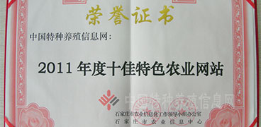 中國(guó)特種養(yǎng)殖信息網(wǎng)榮獲全市2011年度十佳特色農(nóng)業(yè)網(wǎng)站