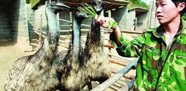 近日,廣西全州縣黃沙河鎮(zhèn)石城村青年農(nóng)民蔣宏偉在自己的養(yǎng)殖場(chǎng)里給鴕鳥(niǎo)喂食。今年24歲的蔣宏偉在廣東打工時(shí)掌握了鴕鳥(niǎo)的養(yǎng)殖技術(shù)。2011年他回到家鄉(xiāng)承包一片荒地,辦起一家