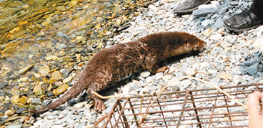 國家二級保護動物水獺被放生黑河月牙潭?! <曳Q,自上世紀80年代以來很少見到,這次發(fā)現(xiàn),證明秦嶺黑河流域還有野生水獺存在 本報訊 (記者 劉振) 一只誤陷粘網的野生