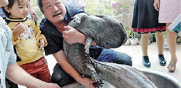 奉節(jié)縣馮坪鄉(xiāng)石泉村57歲的魚(yú)莊老板吳明清,家中養(yǎng)了兩條娃娃魚(yú),17年來(lái),他視兩條娃娃魚(yú)為家人,有著不同尋常的感情,如今,吳老板想給它們找個(gè)媳婦。 又重又滑,吳明清已很難將