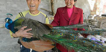 4月8日,新疆生產(chǎn)建設(shè)兵團(tuán)農(nóng)二師二十二團(tuán)退休職工張衛(wèi)新笑咪咪地抱著藍(lán)孔雀向大家展示。張衛(wèi)新夫婦自3年前就開始飼養(yǎng)觀賞型藍(lán)孔雀,在夫婦倆的精心照料下,現(xiàn)已成年的4只藍(lán)孔