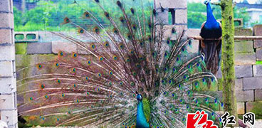 一個(gè)名叫周瓊的女人,擁有一個(gè)藍(lán)孔雀“王國”。5月13日,筆者騎著摩托車,取道筆架山下,沿著綠樹掩映的鄉(xiāng)間公路騎行,來到了保靖縣復(fù)興鎮(zhèn)那甫村。從公路拐上約10米,在