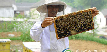 5月9日下午,在澤州縣南嶺鄉(xiāng)閆莊村,新南嶺峰業(yè)專業(yè)合作社的帶頭人呂積相正在幫助蜂農(nóng)查看蜂群情況。新南嶺峰業(yè)合作社發(fā)展社員200多戶,年產(chǎn)蜂蜜80萬斤,不僅幫助山區(qū)農(nóng)民增收,