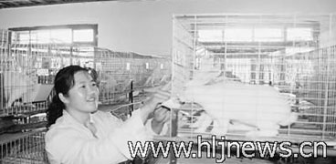 【導(dǎo)語(yǔ)·中國(guó)特種養(yǎng)殖網(wǎng)】黑河市愛輝區(qū)幸福鄉(xiāng)以產(chǎn)業(yè)結(jié)構(gòu)調(diào)整促農(nóng)增收為主線,大力發(fā)展特色養(yǎng)殖,引進(jìn)獺兔養(yǎng)殖龍頭企業(yè)扎根落戶,帶動(dòng)農(nóng)民養(yǎng)兔致富。圖為飼養(yǎng)人員在檢查