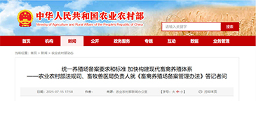 2025年7月11日,農(nóng)業(yè)農(nóng)村部部長(zhǎng)韓俊簽發(fā)2025年第2號(hào)農(nóng)業(yè)農(nóng)村部令,公布了《畜禽養(yǎng)殖場(chǎng)備案管理辦法》(以下簡(jiǎn)稱(chēng)《辦法》),將于2025年9月1日起實(shí)施。農(nóng)業(yè)農(nóng)村部法規(guī)司、畜牧獸