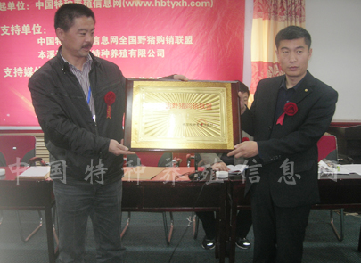 靳總給全國野豬購銷聯(lián)盟會長劉斌授牌