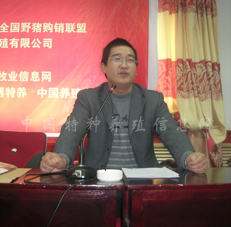 以“行業(yè)自醒,找準定位,再圖發(fā)展”為主題。上午的會議由中國特種養(yǎng)殖信息網(wǎng)網(wǎng)站總監(jiān)靳國慶主持。會議首先宣布了網(wǎng)站“全國野豬購銷聯(lián)盟”的正式成立,靳國慶向與會代表介紹了聯(lián)盟成立的背景以及人員篩選的整個過程。同時靳國慶向聯(lián)盟會長劉斌授盟,并由會長劉斌和靳國慶共同向推選的各位副會長授牌和頒發(fā)證書。在穿插了英國永農(nóng)公司東北區(qū)崔團總經(jīng)理“野豬綠色養(yǎng)殖”和北京華夏康源公司夏彪總經(jīng)理的“發(fā)酵床在野豬行業(yè)的應(yīng)用”專題講座后,靳國慶做了“樹立三個意識”的主題演講。他講到,作為特養(yǎng)行業(yè)的分支,野豬行業(yè)同仁應(yīng)該樹立“行業(yè)、責任、誠信”三種意識,同時提出“只有穩(wěn)定發(fā)展的行業(yè),才會出現(xiàn)眾多健康發(fā)展”的理念,對野豬行業(yè)的發(fā)展現(xiàn)狀和前景發(fā)表了自己的看法。