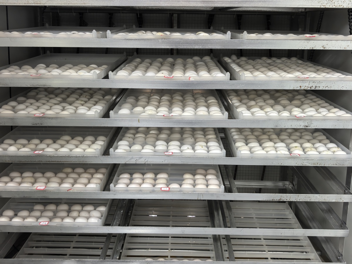 走進(jìn)愚公鴿幫的孵化車間,三臺(tái)全自動(dòng)鴿子孵化機(jī)整齊排列,恒溫恒濕的環(huán)境里,鴿子蛋靜靜孕育著新生命,部分已破殼的鴿仔發(fā)出清脆叫聲。“鴿子蛋在這里孵化18天就能破殼,工作人員會(huì)根據(jù)生產(chǎn)日期,把鴿仔送到對(duì)應(yīng)的種鴿媽媽身邊喂養(yǎng)。”趙九高介紹道。