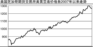2006年10月以來(lái),國(guó)際大豆價(jià)格持續(xù)快速上漲,直到突破歷史最高價(jià),中間沒有調(diào)整。上一交易日,美豆指數(shù)以1298收盤,仍然保持強(qiáng)勢(shì),處歷史最高價(jià)位區(qū)間。從2007年10月至2008年年初,美豆指數(shù)在短短兩個(gè)月內(nèi),翻了一倍。