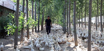 盛夏炎炎,萬(wàn)物生長(zhǎng)。近日,在河北省衡水市棗強(qiáng)縣王均鄉(xiāng)東故縣村的永盛養(yǎng)殖場(chǎng)內(nèi),記者看到上萬(wàn)只大鵝穿梭林間,引頸高歌,好不熱鬧。鵝群中有個(gè)忙碌的身影正在給大鵝投喂飼料,他就