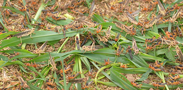 近日,在河北省滄州市海興縣趙毛陶鎮(zhèn)北四村的螞蚱養(yǎng)殖大棚內(nèi),養(yǎng)殖戶崔向龍正在給螞蚱喂食新鮮的牧草。只見手指般粗壯的螞蚱在大棚里蹦跳翻飛,撲騰聲此起彼伏,迎來了又一個豐