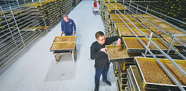 近日,山東省德州市陵城區(qū)邊臨鎮(zhèn)德馨黨建聯合體的黃粉蟲烘干車間內,一派繁忙。經過約40分鐘的烘干處理,一只只金黃飽滿的黃粉蟲陸續(xù)“走下”生產線,靜待包裝后出口