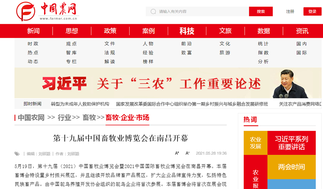 5月19日,第十九屆(2021)中國畜牧業(yè)博覽會暨2021中國國際畜牧業(yè)博覽會在南昌開幕。本屆畜博會特設(shè)置鄉(xiāng)村振興展區(qū),并且繼續(xù)開放品牌畜產(chǎn)品展區(qū),擴大企業(yè)品牌宣傳力度,弘揚特色民族畜產(chǎn)品。由中國鴕鳥養(yǎng)殖開發(fā)協(xié)會組織的鴕鳥企業(yè)將首次參展。本屆畜博會將首次在展會現(xiàn)場開展“直播帶貨”,為優(yōu)秀的產(chǎn)品做推廣,協(xié)助展商促成訂單。同時通過直播、短視頻等活動讓沒有到現(xiàn)場的行業(yè)人也可以參與到這場盛會中來,感受畜牧業(yè)的發(fā)展與變化,讓“趣味畜博”、“時尚畜博”成為畜博會的代名詞。