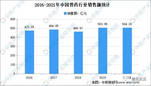 近年來(lái),我國(guó)獸藥生產(chǎn)能力和水平不斷提高,產(chǎn)業(yè)規(guī)模不斷擴(kuò)大。2016-2019年,我國(guó)獸藥行業(yè)規(guī)模整體呈增長(zhǎng)態(tài)勢(shì)。2019年,我國(guó)1632家獸藥生產(chǎn)企業(yè),共完成552.88億元的獸藥生產(chǎn)總值,銷售額達(dá)503.95億元,同比增長(zhǎng)9.8%。中商產(chǎn)業(yè)研究院預(yù)測(cè),2021年我國(guó)獸藥行業(yè)銷售額將達(dá)504.28億元。