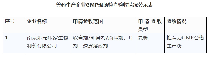 第8批獸藥生產(chǎn)企業(yè)GMP檢查驗收情況公示
