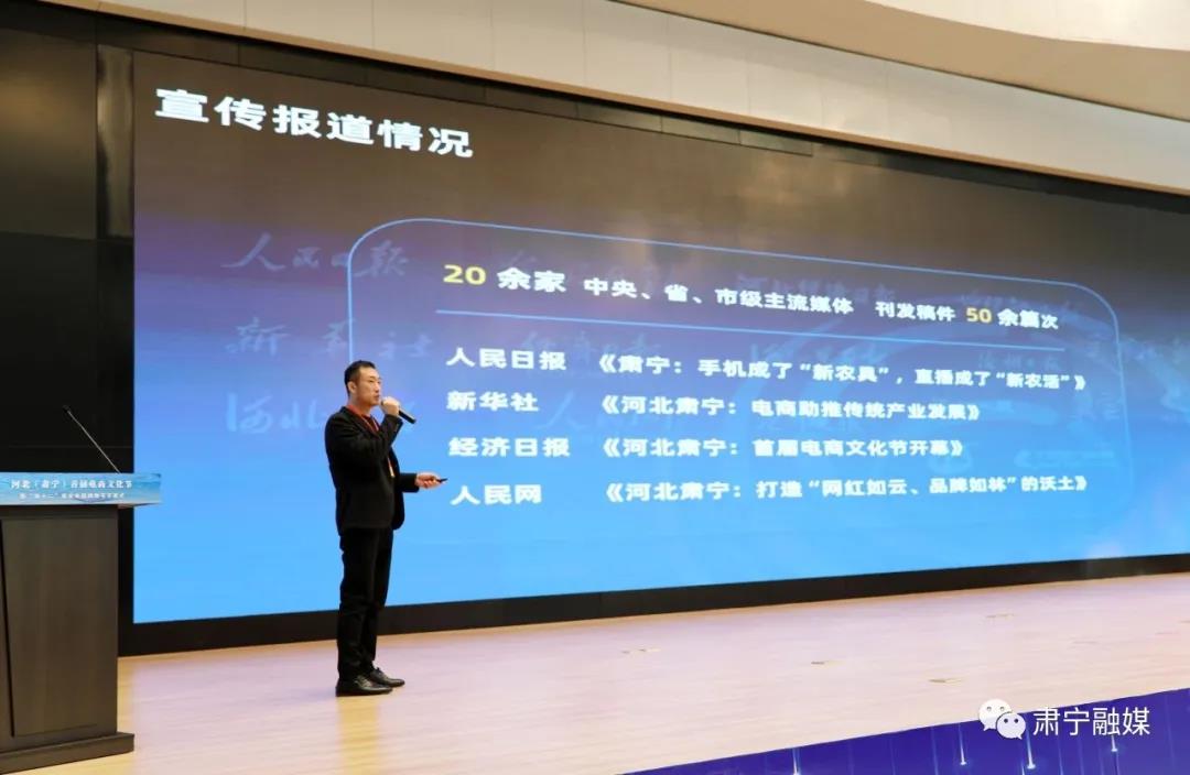▲肅寧縣電商協(xié)會(huì)會(huì)長(zhǎng)宋從偉發(fā)布河北(肅寧)首屆電商文化節(jié)數(shù)據(jù)
