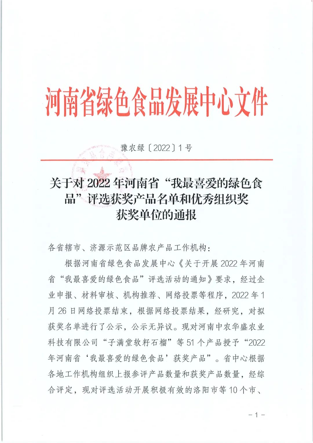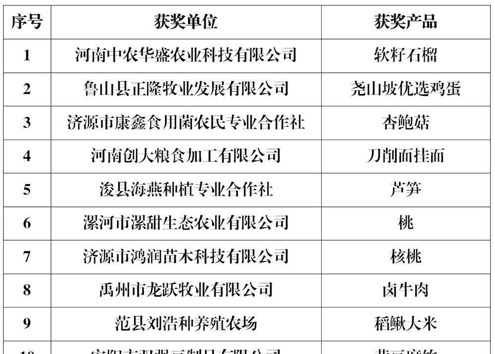 2022年河南省“我最喜愛的綠色食品”評(píng)選獲獎(jiǎng)產(chǎn)品