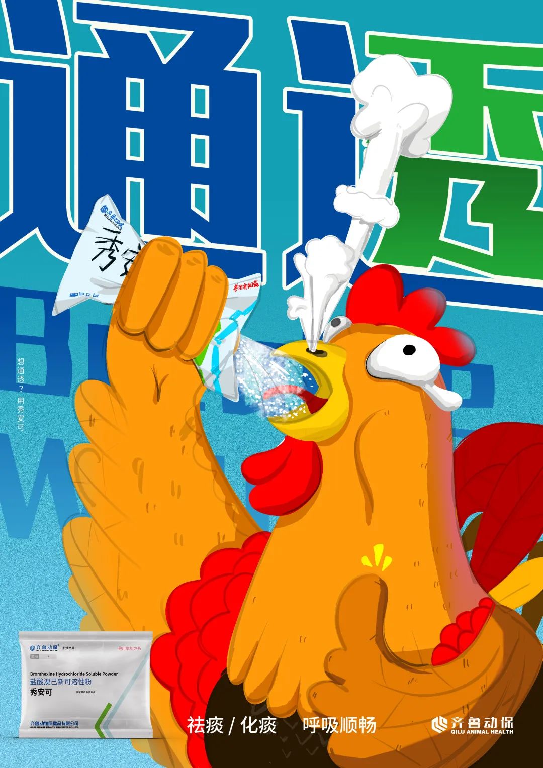 一種高效祛痰藥,增強抗生素藥效。用于黏液堵塞呼吸道為主要特征的雞呼吸系統(tǒng)疾病的輔助治療。