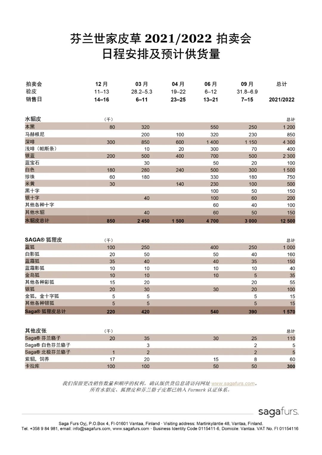 調(diào)整后的銷售日期為4月25日至27日,驗(yàn)皮日期從4月21日開(kāi)始。更多關(guān)于拍賣會(huì)供貨量和預(yù)計(jì)銷售程序的信息將于下周公布。