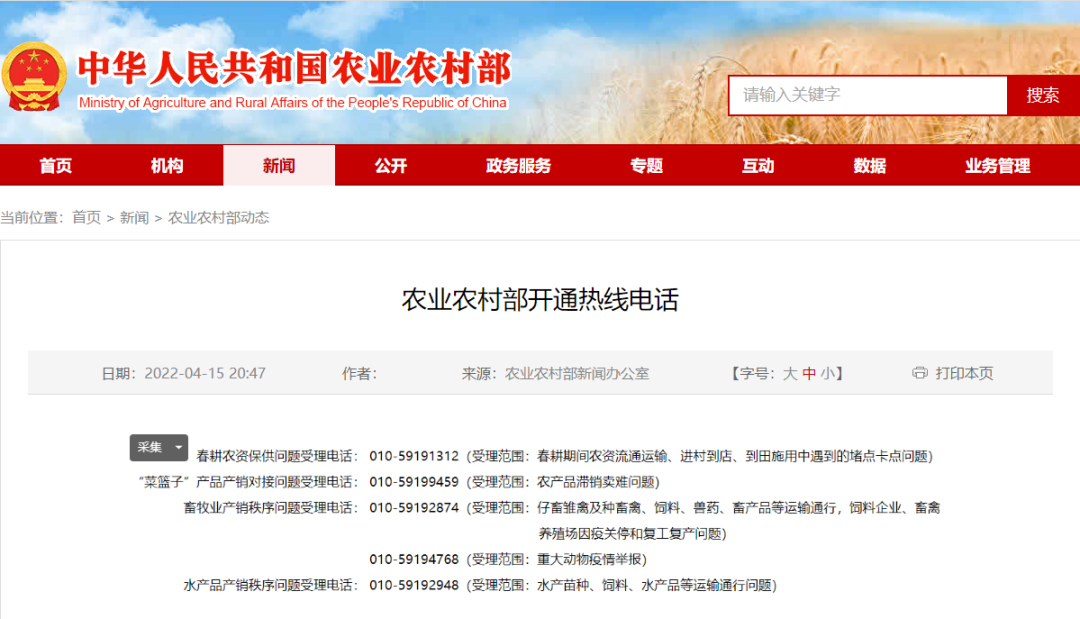 近日,農業(yè)農村部公布聯(lián)系電話,安排專人接聽群眾來電,協(xié)調解決群眾的“急難愁盼”問題。