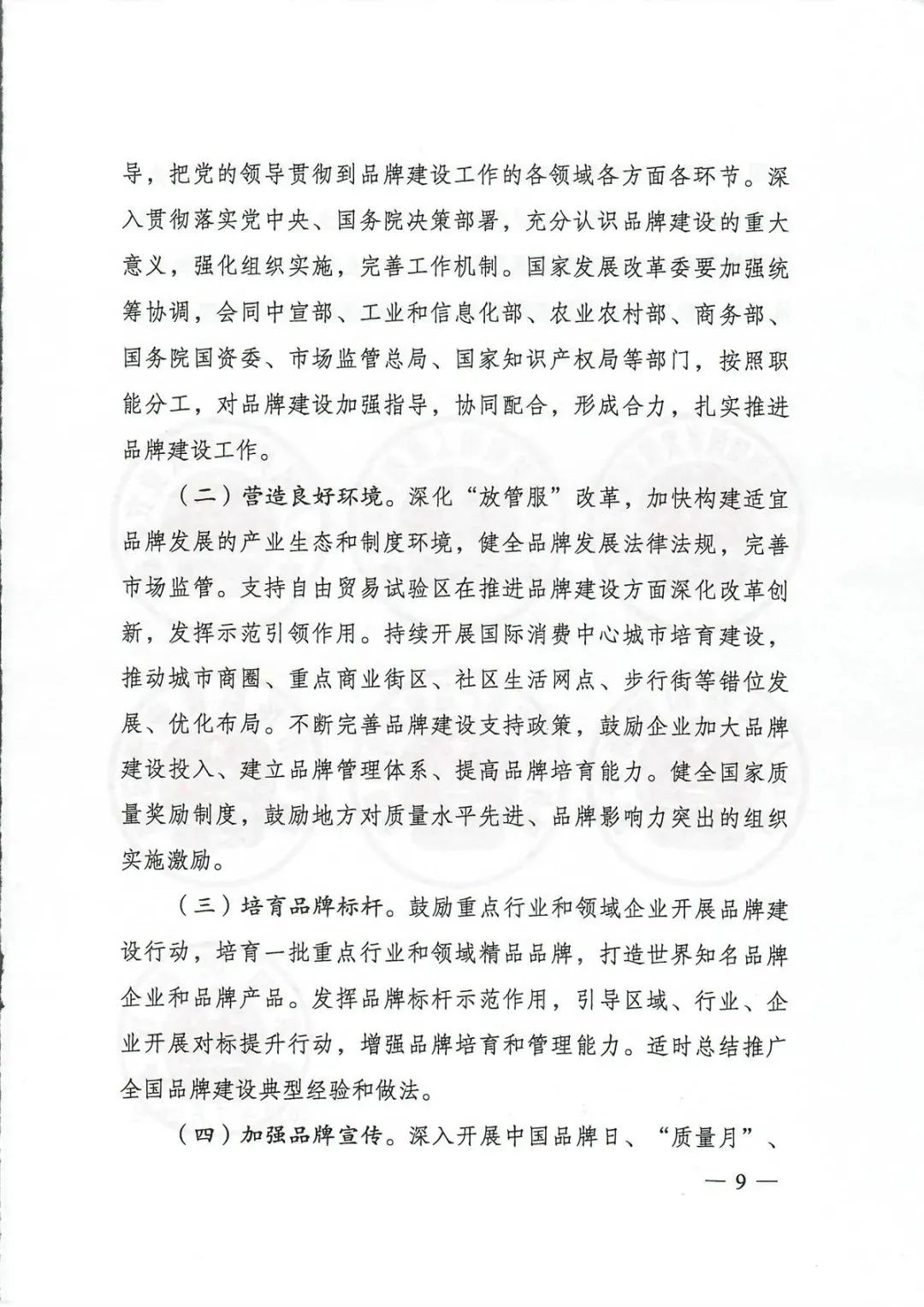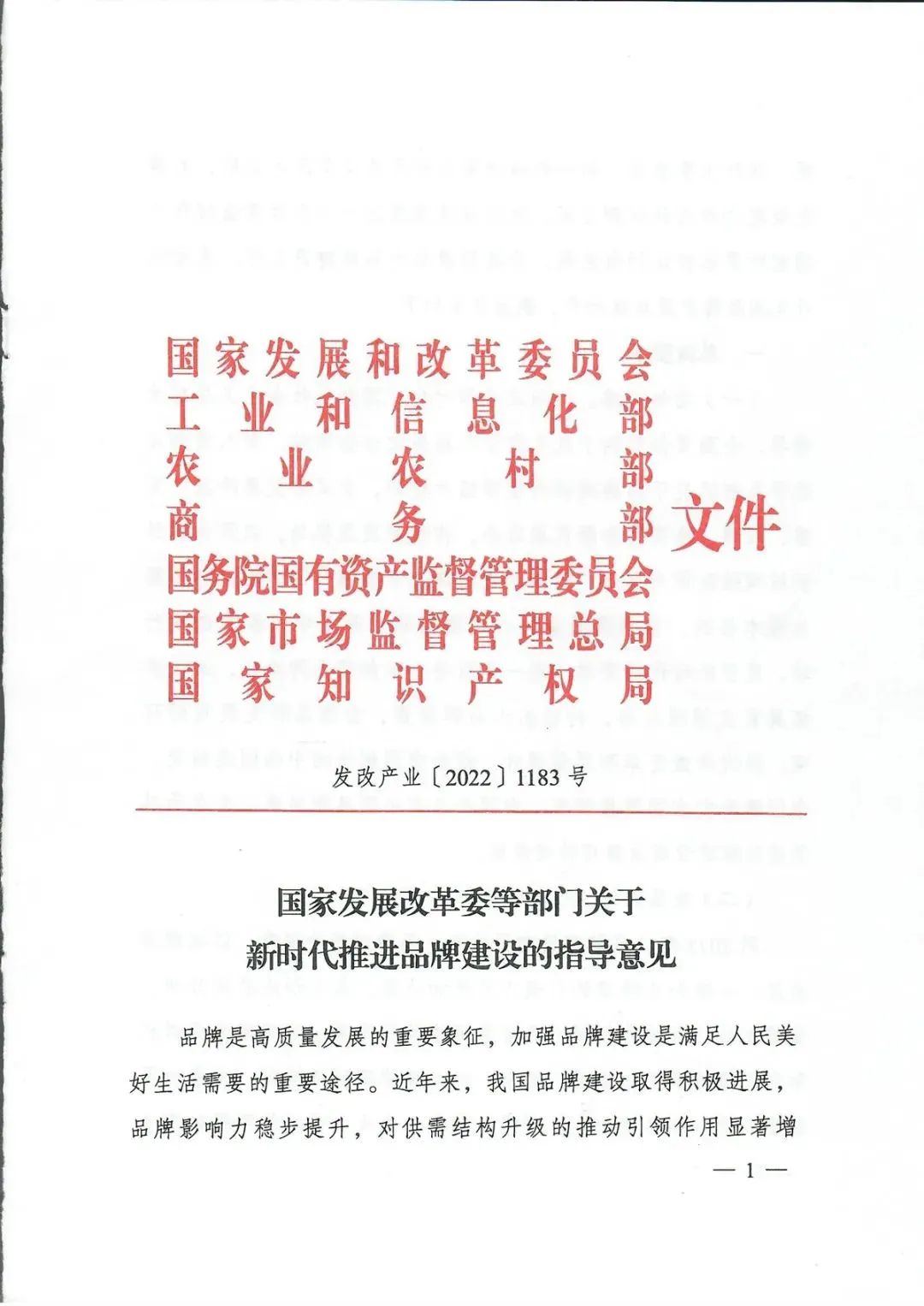 國(guó)家發(fā)展改革委等部門發(fā)布《關(guān)于新時(shí)代推進(jìn)品牌建設(shè)的指導(dǎo)意見》