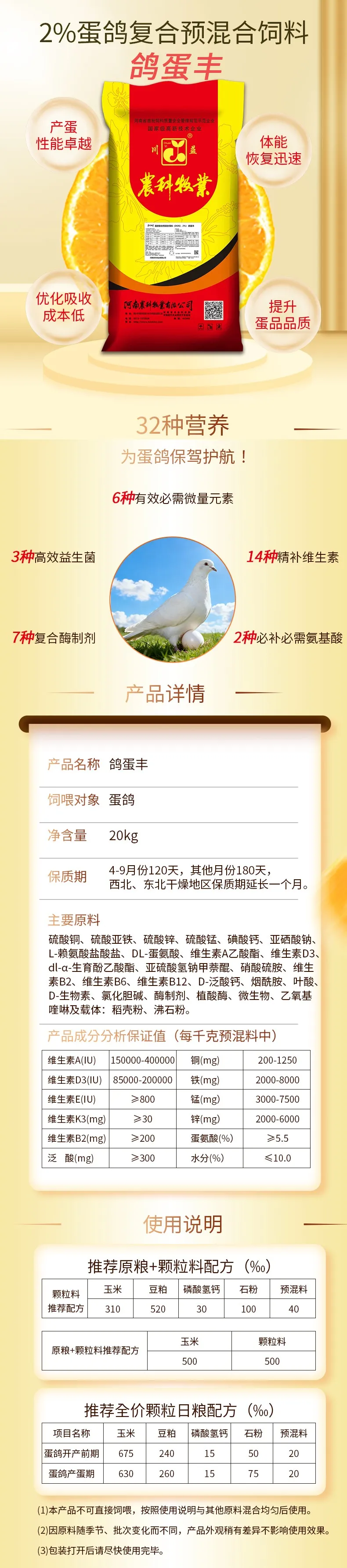 公司將科研成果與實際養(yǎng)殖場景深度融合,推出定制化鴿類養(yǎng)殖配方服務(wù),同時以全流程標(biāo)準(zhǔn)化質(zhì)量管控體系保障產(chǎn)品品質(zhì),搭配專業(yè)技術(shù)服務(wù)團隊深耕養(yǎng)殖一線提供專屬指導(dǎo),為廣大養(yǎng)殖者打造科學(xué)、高效的營養(yǎng)解決方案,全方位為鴿養(yǎng)殖降本增效提供核心支撐。