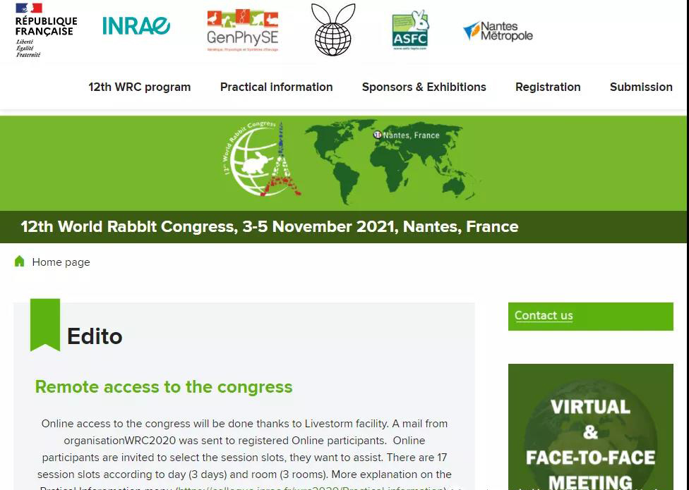 近日,第十二屆世界家兔科學大會(12th World Rabbit Congress)在法國南特市召開,此次會議由世界家兔科學學會(World Rabbit Science Association,WRSA)、法國農(nóng)業(yè)食品與環(huán)