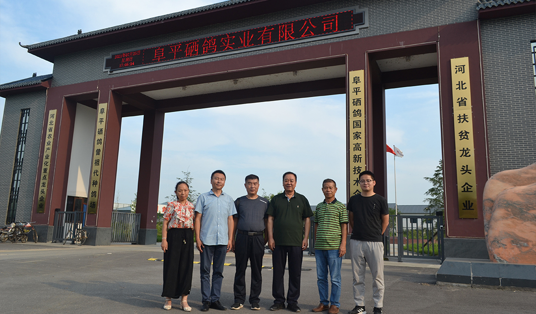 2021年7月25日,中國畜牧業(yè)協(xié)會鴿業(yè)分會會長、廣東省肉鴿行業(yè)協(xié)會會長陳益填,河北省毛皮產(chǎn)業(yè)協(xié)會黨支部書記、執(zhí)行會長靳國慶來到位于保定市阜平縣的阜平硒鴿實業(yè)有限公司,
