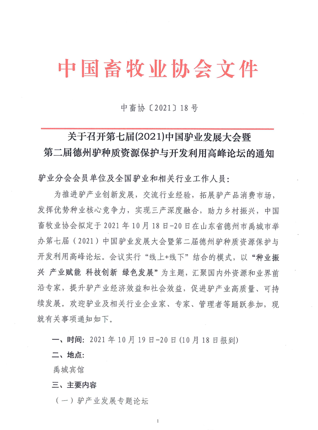 關(guān)于召開第七屆(2021)中國驢業(yè)發(fā)展大會暨 第二屆德州驢種質(zhì)資源保護與開發(fā)利用高峰論壇的通知驢業(yè)分會會員單位及全國驢業(yè)和相關(guān)行業(yè)工作人員: 為推進驢產(chǎn)業(yè)創(chuàng)新發(fā)展,