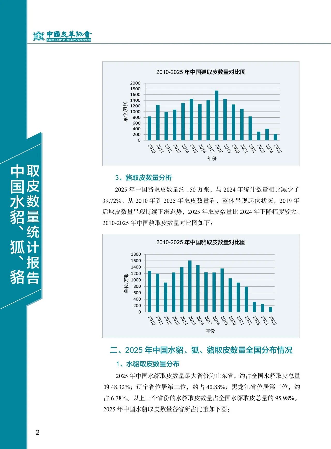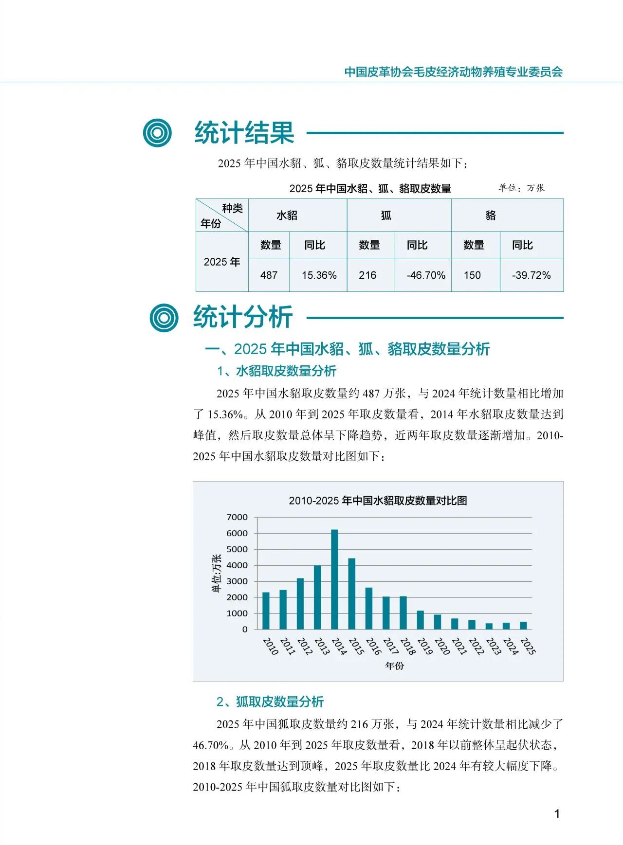 2025年中國水貂、狐、貉取皮數(shù)量統(tǒng)計報告